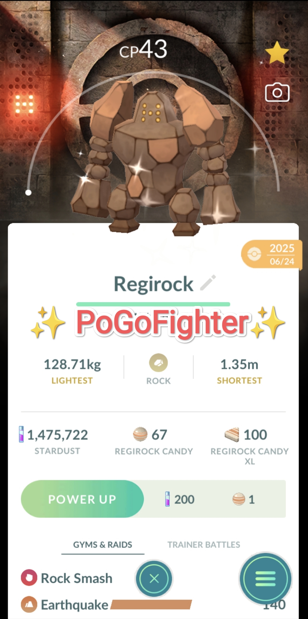 Pokémon GO Shiny Regirock Special Background - Level 1 - Trade 20.000 stardust (Read Describe)