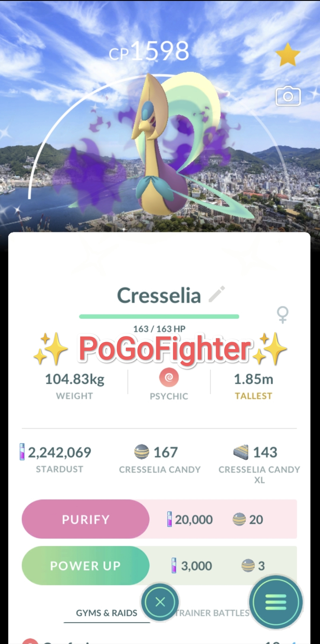 Pokémon GO Shiny Cresselia (Purified) – GO Wild Area: Nagasaki Background – Trade 20.000 stardust (Read Describe)